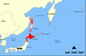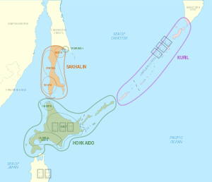 | Ainu language family (Hokkaido in Japan; historically prominent, now critically endangered); Japanese (Hokkaido dialects) or Russian (modern-day)[4] | |