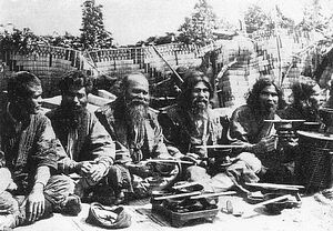 The Ainu are one of the only major ethnic minorities in the Japanese islands with a distinct and highly unique culture and way of life. They were subject to forced assimilation and colonization by the far larger Yamato population of Japan since at least the 18th century. Japanese assimilation policies in the 19th century around the Meiji Restoration included forcing Ainu peoples off their land; this, in turn, forced them to give up traditional ways of life such as subsistence hunting and fishing. Ainu people were not allowed to practice their religion, and they were pushed into Japanese-language schools where speaking the Ainu language was strictly forbidden. In 1966, there were about 300 native Ainu speakers; in 2008, there were about 100.[10][11] Since 2019, there are increasing efforts to revitalize the Ainu language.[12]