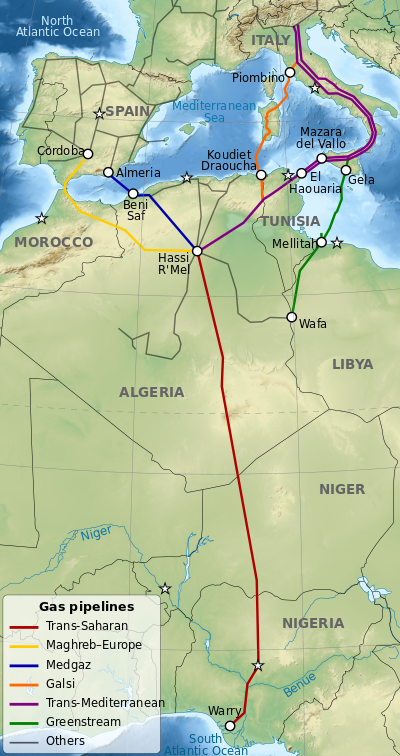- ^ "الجزائر ترفض طلبًا أميركيًا لزيادة إمدادات الغاز إلى أوروبا عبر المغرب". ألترا الجزائر. 2022-03-19. Retrieved 2022-03-19.