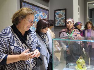 شاهندة كريم (أقصى اليسار)، في متحف الفن الإسلامي بالقاهرة، بعد ترميمه عام 2017.
