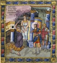 David glorified by the women of Israel from the Paris Psalter, example of the Macedonian art (Byzantine) (sometimes called the Macedonian Renaissance)