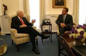 نائب الرئيس ديك تشيني مع آرنولد شوارزنيجر في البيت الأبيض