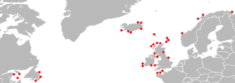 مواقع المستعمرات الأطيش في شمال المحيط الأطلسي