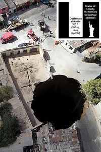 بالوعة جواتيمالا Sinkhole, Guatemala ، وينشأ هذا النوع من الحفر نتيجة لوقوع الزلازل في القشرة الأرضية ويحدث مجاري في الأرض تتجمع فيها في الغالب مياه الأمطار والبحار والأنهار. وتشكل تلك الحفرة خطرا كبيرا حيث إبتلعت عشرات المنازل والأشخاص.