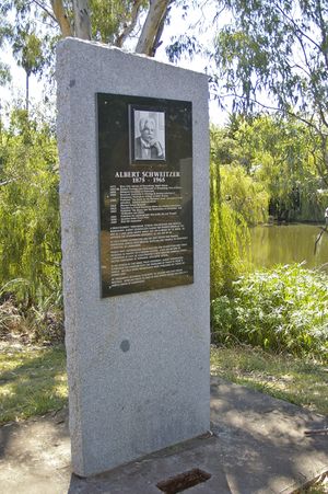 ٲلبرت شڤايتسر (1875 - 1965) فيلسوف وطبيب وعالم ديني وموسيقي وفيزيائي ألماني٬ ٲصله من الألزاس. حصل عام 1952 على جائزة نوبل للسلام لفلسفته عن تقديس الحياة. لكن من أعظم وأشهر أعماله تأسيس وإدارة مستشفى في الگابون، غرب وسط أفريقيا.
