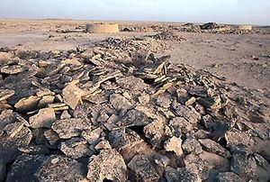 قد اكتشف علماء الآثار مقبرة تضم 50 مدفنا مبنيا فوق سطح الأرض. هذه المدافن دائرية الشكل[3] حيث يبلغ قطرها 6 إلى 12 متر وعلوها بضعة أمتار، وهي مقّسمة إلى غرف يتم الدخول إليها من خلال مداخل صغيرة شبه منحرفة الشكل. وقد تم تصميم كل غرفة لإيواء عدة جثث: ومن الصعب تحديد العدد لأن بقايا الهياكل كانت مبعثرة مع تغيرات الزمن وتعرضها لنبش لصوص القبور في الأزمنة الغابرة.