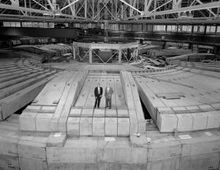 إدوين مكميلان وإدوارد لوفگرن على درع البـِڤاترون. الدرع أضيف لاحقاً، بعد التشغيل المبدئي.