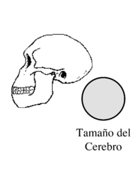 In addition to a small body size, H. floresiensis had a remarkably small brain size. LB1's brain is estimated to have had a volume of 380 cm3 (23 cu in), placing it at the range of chimpanzees or the extinct australopithecines.[1][48] LB1's brain size is less than half that of its presumed immediate ancestor, H. erectus (980 cm3 (60 cu in)).[48] The brain-to-body mass ratio of LB1 lies between that of H. erectus and the great apes.[75] Such a reduction is likely due to insular dwarfism, and a 2009 study found that the reduction in brain size of extinct pygmy hippopotamuses in Madagascar compared with their living relatives is proportionally greater than the reduction in body size, and similar to the reduction in brain size of H. floresiensis compared with H. erectus.[76]