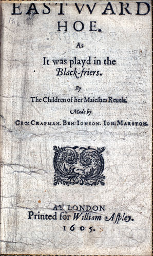 اشترك جونسون مع مارستون وشاپمان في مسرحية إيستوارد هو عام 1605 واعتقلت الحكومة المؤلفين على أساس أن الملهاة أساءت إلى الاسكتلنديين. وهدد المعتقلون بقطع أنوفهم وآذانهم، ولكن أفرج عنهم دون أن يمسوا بأذى، واشترك بعض ذوي المقامات الرفيعة- مثل كامدون وسلدن- في المأدبة التي أقامها الثالوث الذي استرد حريته. ثم، في 7 نوفمبر 1605، استدعى جونسون إلى مجلس الشورى، باعتباره كاثوليكياً يمكن أن يكون لديه معلومات عن مؤامرة البارود. وعلى الرغم من أنه كان قد تناول العشاء مع المدبر الرئيسي كاتسبي، قبل ذلك بشهر، فإنه تفادى كل تورط في المسألة. ولكن في 9 يناير 1606 دعي إلى المحكمة بوصفه متمرداً مخالفاً للقانون. ولما كان فقيراً معدماً إلى حد لا يستطيع معه دفع غرامة مجزية، فإن المحكمة لم تتشدد في الاتهام. وفي 1610 ارتد إلى المذهب الأنجليكاني، في حماسة بالغة إلى حد أنه أتى على كل ما في كأس النبيذ حين جلس إلى "العشاء الرباني". [1]