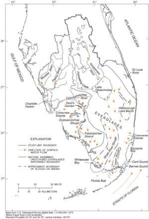 Predevelopment flow direction of water from Lake Okeechobee to Florida Bay Source: U.S. Geological Survey