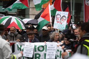 On 26 November 2023, between 50,000-60,000 people joined in a march in London to protest against a rise in hate crimes against Jews since the attack by Hamas terrorists on Israel on 7 October.[49][50] On 14 January 2024, approximately 25,000 people attended a rally in support of Israel in Trafalgar Square, calling for the release of the hostages held by Hamas.[51][52][53] In September 2024, large crowds of protesters at the Labour conference in Liverpool called for a total arms embargo on Israel.[54]