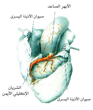 أوعية العروق للأبهر الصاعد. تشريح القطعة الأولية للشريان الإكليلي الأيمن الذي تدرك فروع راجعة منه جدار الأبهر الصاعد لتشكل شبكة وعائية