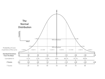 مخطط منحني جرسي يظهر التوزيع الطبيعي الذي يستخدم في العديد من التطبيقات الإحصائية