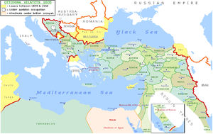 Map of the Ottoman Empire in 1900, with the names of the Ottoman provinces.