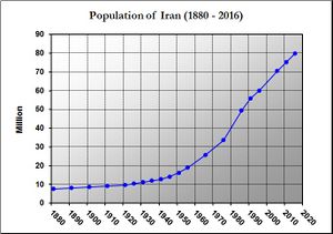 كانت الأهداف طويلة المدى للحكومة منذ الثورة هي الاستقلال الاقتصادي، التوظيف الكامل، ومعيار معيشة مريح، لكن ما بين عام 1980 و2000 زاد عدد سكان إيران بأكثر من الضعف وانخفض متوسط العمر.[66] على الرغم من أن معظم الإيرانيين فلاحين، إلا أن الانتاج الزراعي قد تراجع بشكل مستمر منذ الستينيات. بحلول التسعينيات، كانت إيران تستورد معظم غذائها. في ذلك الوقت، أدت المصاعب الاقتصادية في الريف إلى انتقال الكثير من الناس إلى المدن.[62]