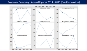 يوضح الجدول التالي المؤشرات الاقتصادية الرئيسية في 1980-2021 (مع تقديرات خبراء صندوق النقد الدولي في 2022-2027). التضخم أقل من 3% باللون الأخضر.[117]