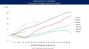 زاد الاقتصاد الأمريكي بنسبة 5.7% عام 2021، وهو أفضل أداء له منذ رئاسة رونالد ريگان (1981-1989).[116]