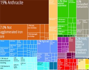 السلع التصديرية | المعادن، المنتجات المعدنية، الصناعات (بما في ذلك الأسلحة)، المنسوجات، المنتجات الزراعية والسمكية، الفحم، خام الحديد، الحجر الجيري، الجرافيت، النحاس، الزنك، والرصاص. |