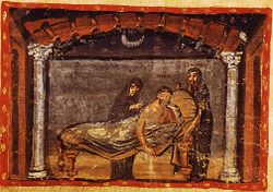 Varro uses the name Dii Consentes for twelve deities whose gilded images stood in the forum. These were also placed in six male-female pairs.[5] Although individual names are not listed, they are assumed to be the deities of the lectisternium. A fragment from Ennius, within whose lifetime the lectisternium occurred, lists the same twelve deities by name, though in a different order from that of Livy: Juno, Vesta, Minerva, Ceres, Diana, Venus, Mars, Mercurius, Jove, Neptunus, Vulcanus, Apollo.[6]