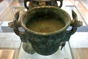 Zhou dynasty ritual Gui (vessel) vessel (the "Kang Hou gui"), with inscription barely visible on inside bottom, British Museum