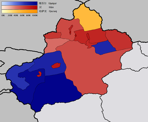 1. ^ "3-7 各地、州、市、县(市)分民族人口数". Statistical Yearbook of Xinjiang in 2016 (新疆维吾尔自治区统计局) (in الصينية). Archived from the original on 2017-10-11. {{cite web}}: Unknown parameter |deadurl= ignored (|url-status= suggested) (help)
