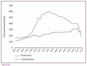 التوسع في التنقب عن النفط و استثماره عن طريق عقود الخدمة مع الشركات الأجنبية فزاد الانتاج من 194 ألف برميل يومياً في 1986 إلى نحو 600 ألف برميل في عام 1995 يخصصص منها 250 ألف برميل يومياً للإستهلاك و الباقي للتصدير
