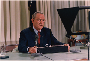 Because Lyndon B. Johnson had been elected to the presidency only once, in 1964, and had served less than two full years of the term before that, the Twenty-second Amendment did not disqualify him from running for another term.[18] As a result, it was widely assumed when 1968 began that President Johnson would run for another term, and that he would have little trouble winning the Democratic nomination.