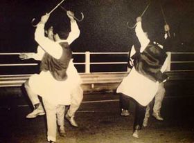 رقصة الكسكة لفرقة الجبل الأخضر فوق جسر وادي الكوف عام 1979