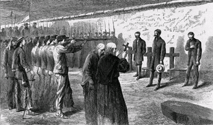 Drawing of the execution of ماكسمليان published shortly after the event in 1867