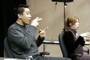 In Israel, Naama Weiss, a board member of Malach, the Organization of the Israeli Sign Language Interpreters,[44] advertised a video which she produced. It was her paraphrase of the video So-Low,[45] and showed her viewpoint upon the Israeli Sign Language interpreters' jobs.[46] A study which was made in Finland found that, in comparison to the foreign language teachers and non-linguistic experts, a high cooperativeness was found to be more characteristic to simultaneous and consecutive interpreters,[47] and Weiss showed it in her video, although she claimed to be comic.[48]