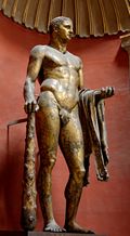 تمثال برونزي مُذهّب لهرقل الأمازيغي عُثر عليه بالقرب من مسرح پومپي عام 1864 (متاحف الپاتيكان، روما).