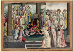 By early 1726, the Ottoman diplomatic and military initiatives were at their peak. They had successfully established their administration in the occupied regions, and expanded beyond the lands given to them in the 1724 treaty.[7] However, the Ottomans would soon be confronted with a diplomatic enigma from the Hotaks. The Afghans sent an envoy by the name of Haji 'Abd al-'Aziz, a scholar from Mecca, to Istanbul and he arrived there on January 20, 1726.[7] Despite the acceptance of this mission violating the 1724 treaty (as the Ottomans were not supposed to recognize the Afghan government or give them aid), Ibrahim Pasha hoped that the Afghans would pledge allegiance to the Ottoman sultan due to the unstable nature of the regime and give them indirect control over the rest of the country. However, he was to be disappointed for Shah Ashraf did not recognize the Ottoman occupation of western Iran and wanted those territories returned. In addition to this, he wanted to be recognized as the Sunni caliph in his own domains.[1][7]