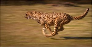 A cheetah chasing prey. In its brief hunting sprints, it is the fastest of all land animals.