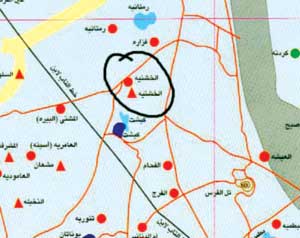خريطة توضح موقع قرية الخشنية.