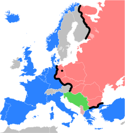 أظهر الحصار السوڤيتي لبرلين الغربية بجلاء للغرب أن الحليف السابق قد أضحى خصماً حاليا وصدقت نبوءة رئيس الوزراء السابق ونستون تشرشل في خطابه الشهير عام 1946 والذى قال فيه أنه من مدينة شتتين في الشمال (كانت مدينة ألمانية ثم أصبحت بولندية) إلى مدينة ترييسته في الجنوب (كانت نمساوية وأصبحت إيطالية) إنسدل ستار حديدي يفصل بين جزئى أوروبا. وسميت الحدود الفاصلة بين المعسكرين المختلفين إيديولوجيا وفكريا وإقتصاديا وعسكريا بالستار الحديدي.
