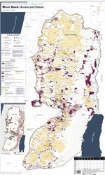 مناطق السلطة الفلسطينية في الضفة الغربية حسب اتفاق أوسلو، حيث يشير اللون الأصفر الغامق (أ) للمناطق ذات السيادة الفلسطينية التامة، بينما اللون الأصفر الفاتح (ب) فهي مناطق ذات سيطرة فلسطينية - إسرائيلية مشتركة، اما اللون الأبيض (ج) فهي مناطق تحت السيطرة الإسرائيلية الأمنية المباشرة. اللون البني يبين التجمعات الاستيطانية الإسرائيلية منذ حرب 1967. بالنسبة لقطاع غزة فهو تحت السيطرة الفلسطينية الكاملة حاليا - بعد انسحاب إسرائيل منه عام 2005 وإخلاء مستوطناتها منه.
