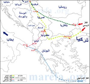 المسارات المحتملة لعبور أنابيب الغاز لمنطقة البلقان.