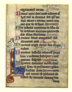 A page from a Psalter dating from the early 14th century, showing the end of Psalm 145 and the start of Psalm 146.