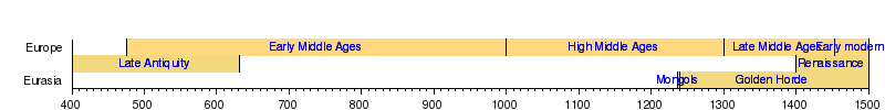 Golden HordeMongol invasion of EuropeRenaissanceLate AntiquityEarly modernLate Middle AgesHigh Middle AgesEarly Middle Ages