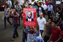 الرئيس الأمريكي باراك أوباما في زيارة للأهرامات التي ألقى خلالها خطاب القاهرة الشهير عن "التغير" في الغلاقات الأمريكية بالعالم الإسلامي، يونيو 2009.