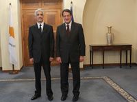 الرئيس القبرصي أنستاسيادس يستقبل سفير الجزائر لدى قبرص، أحمد بوزيان، المقيم في بيروت، في 3 أكتوبر 2014.
