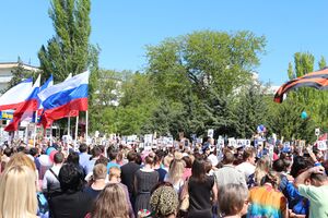 طوال شهري مارس وأبريل 2014، انتشرت الاضطرابات الموالية لروسيا في أوكرانيا، حيث أعلنت الجماعات الموالية لروسيا "الجمهوريات الشعبية" في الأوبلاستات في دونيتسك و لوهانسك ، اعتبارا من 2017[تحديث] وكلاهما خارج سيطرة الحكومة الأوكرانية جزئياً.[151]
