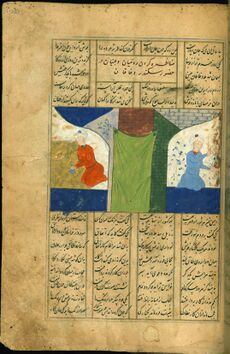 From Turkic peoples of Central Asia during the Northern Wei (386–535 AD) period, the Eastern Romans acquired yet another name for China: Taugast (Old Turkic: Tabghach).[21] Theophylact Simocatta, a historian during the reign of Heraclius (r. 610–641 AD), wrote that Taugast (or Taugas) was a great eastern empire colonised by Turkic people, with a capital city 2،400 كيلومتر (1،500 mi) northeast of India that he called Khubdan (from the Turkic word Khumdan used for the Sui and Tang capital Chang'an), where idolatry was practised but the people were wise and lived by just laws.[23] He depicted the Chinese empire as being divided by a great river (the Yangzi) that served as the boundary between two rival nations at war; during the reign of Byzantine Emperor Maurice (582–602 AD) the northerners wearing "black coats" conquered the "red coats" of the south (black being a distinctive colour worn by the people of Shaanxi, location of the Sui capital Sui Chang'an, according to the 16th-century Persian traveller Hajji Mahomed, or Chaggi Memet).[24] This account may correspond to the conquest of the Chen dynasty and reunification of China by Emperor Wen of Sui (r. 581–604 AD).[24] Simocatta names their ruler as Taisson, which he claimed meant Son of God, either correlating to the Chinese Tianzi (Son of Heaven) or even the name of the contemporary ruler Emperor Taizong of Tang (r. 626–649 AD).[25] Later medieval Europeans in China wrote of it as two separate countries, with Cathay in the north and Mangi in the south, during the period when the Yuan dynasty led by Mongol ruler Kublai Khan (r. 1260–1294 AD) conquered the Southern Song dynasty.[26][27][28]