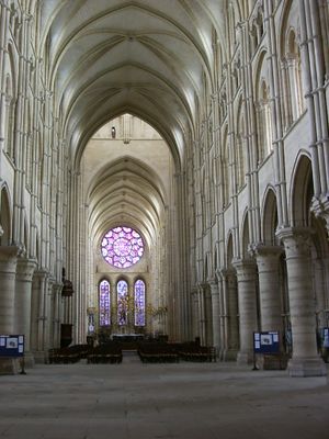 ولقد اخترنا كنيسة تشارتر لتمثيل العمارة القوطية الناضجة أو المتشعبة، وليس من واجبنا أن نعمد إلى هذه الإطالة نفسها في الحديث عن الكنائس ريمس، وأمين، وبوفيه. ولكن منذا الذي يستطيع أن يمر مسرعاً بالواجهة الغربية من كنيسة ريمس؟ وو أن الشماريخ الأصلية ظلت حتى الآن قائمة فوق الأبراج لكانت هذه الواجهة أعظم ما قام به الإنسان من أعمال، وإنا لتدهشنا وحدة الطراز وأجزاء الكنيسة المختلفة وتناسقها في بناء أقامته ستة أجيال من الناس. فقد دمرت النار في عام 1210 الكثدرائية التي أتمها هنكمار Hincmar في عام 840 ، وبدئت في يوم الذكرى الأولى لهذا الحريق كثدرائية جديدة من تصميم ربرت دي كوسي Robert de Coucy وجان دوربيه Jean dorbais. تليق بأن يتوج فيها ملوك فرنسا. ودام العمل أربعين عاماً نفد بعدها المال، فوقف البناء (1251)، ولم تتم الكنيسة العظيمة إلا في عام 1427. ودمرت النار في عام 1480 شماريخ الأبراج، واستخدمت أموال الكثدرائية المدخرة في ترميم البناء الرئيسي، أما الأبراج فلم يجدد بناؤها. ودمرت القنابل في الحرب العالمية الأولى عدداً من مساند الجدران وأحدثت فجوات كبيرة في السقف وفي القبة، ودمرت النار السقف الخارجي وحطمت كثيراً من التماثيل، ودمرت جماعات من المتعصبين عدداً آخر من الصور، وعدا الزمان على بعضها الآخر فأبلاه ذلك أن التاريخ صراع بين الفن وعوادي الأيام.