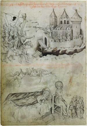 The Hungarian King Béla IV on the flight from the Mongols under general Kadan of the Golden Horde.