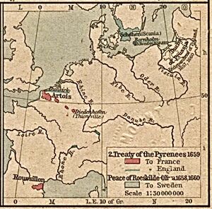 Territorial changes due to the Treaty of the Pyrenees (1659), including French Flanders