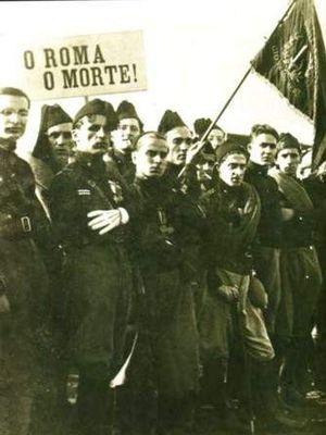 كوَّن بنيتو موسوليني نواة الحزب الفاشي سنة 1919م. وأسس الحزب رسميًّا عام 1921م. وقد استولت الجماعة المسماة بالقمصان السوداء، بقيادة موسوليني، على الحكومة الإيطالية بعد زحفهم الشهير على روما سنة 1922م. وأجبروا الملك فكتور إيمانويل الثالث على أن يعيِّن موسوليني رئيسًا لوزراء الحكومة الجديدة. وقد سيطر موسوليني وجماعة القمصان السوداء على إيطاليا حتى عام 1943م حيث أخرجهم الحلفاء من السلطة.