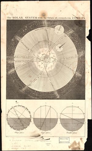 True-scale Solar System poster made by Emanuel Bowen in 1747. At that time, Uranus, Neptune, and the asteroid belts had all not yet been discovered.