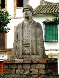 Born in an alqueria on the outskirts of Torrox to a family of Yemeni Arab origin with some juridical ancestors, ibn Abi ʿĀmir left for Córdoba when still young to be trained as a faqīh.[1] After a few humble beginnings, he joined the court administration and soon gained the confidence of Subh, mother of the children of Caliph Al-Hakam II.[2] Thanks to her patronage and his own efficiency, he quickly expanded his role.[3]