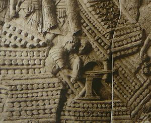 الصورة اليسرى: Section of عمود تراجان، روما، 113م، مع مناظر من حروب تراجان الداتشية
